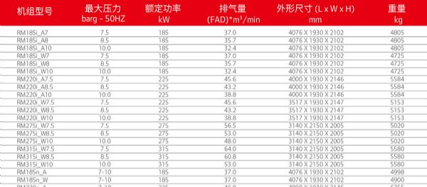 產(chǎn)品名稱:RM系列185-315 kW微油螺桿式空氣縮系統(tǒng)壓力:7-10bar功率:185-315kw排氣量:32.4-64.0m3/min品牌:英格索蘭