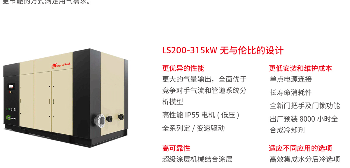 產品名稱:LS系列200-315kW低壓無油螺桿空壓機